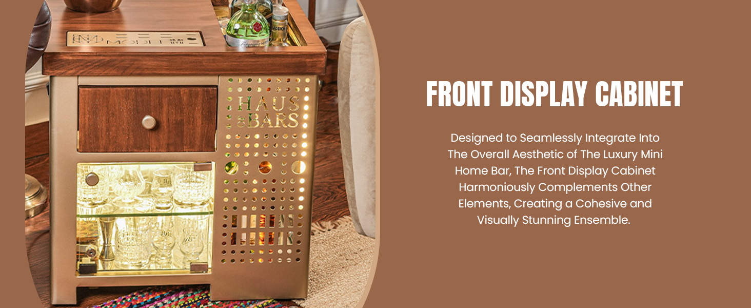 Model M Mini Bar for home, Matte Gold With Right Side Display Cabinet