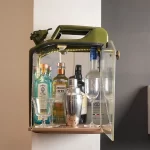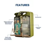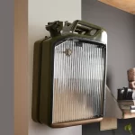JerryCan bar by SpeedX is the ultimate statement piece, masterfully transforming the iconic utility of a jerrycan into a luxury, wall-mounted drinks cabinet and illuminated display with fluted glass. Designed for the modern enthusiast, this unit frees up floor space while giving your collection the attention it deserves. Upon opening the secure latch, the rugged exterior reveals a refined, mirrored interior engineered to securely store 03-04 standard-sized bottles. The shelf cleverly drops down to form a sturdy serving shelf ready to hold 04-05 cocktail glasses/shakers. The entire display is brought to life by a powerful, integrated backlight that casts a warm glow, display your spirits with dramatic effect. The JERRYCAN BAR is more than storage—it’s resourceful design, perfected.
