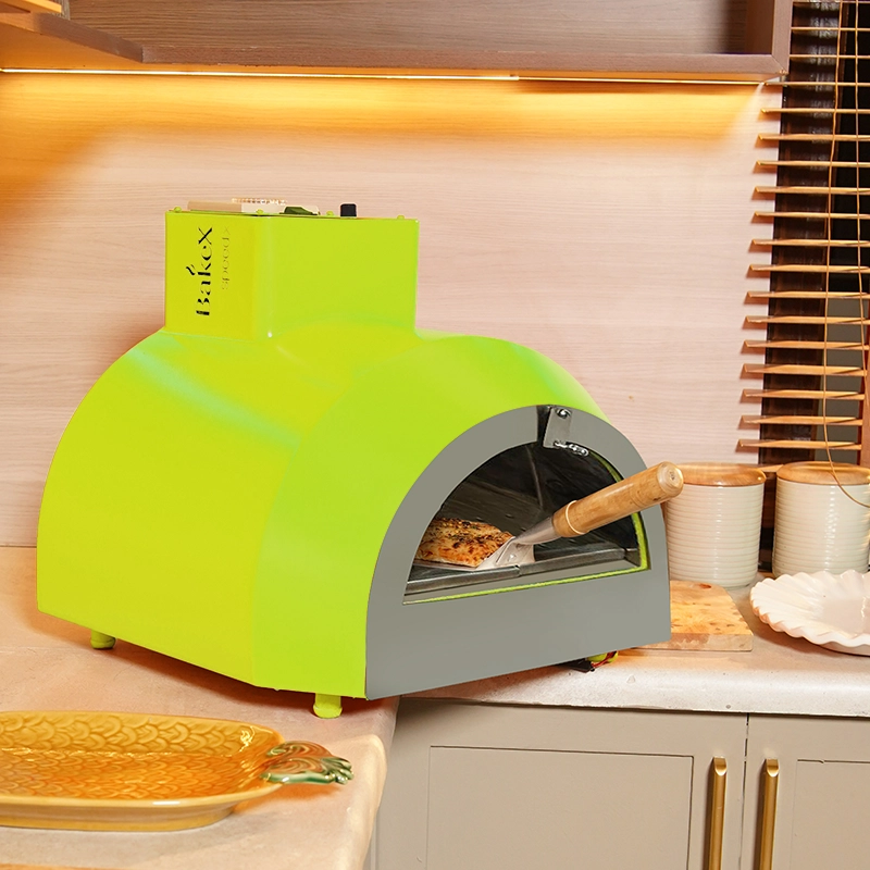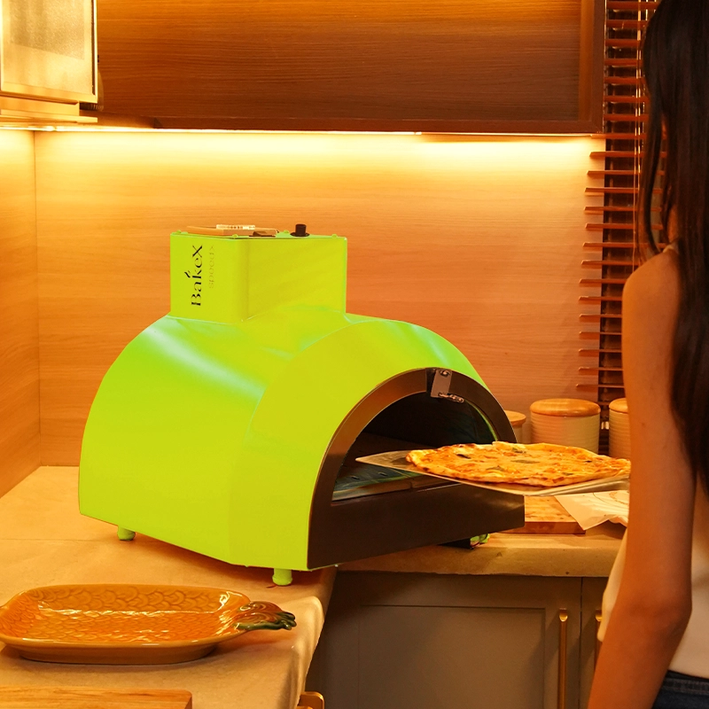 • With its sleek, circular design, the pizza oven fits effortlessly both indoors & outdoors: gardens, balconies, patios, or terraces.