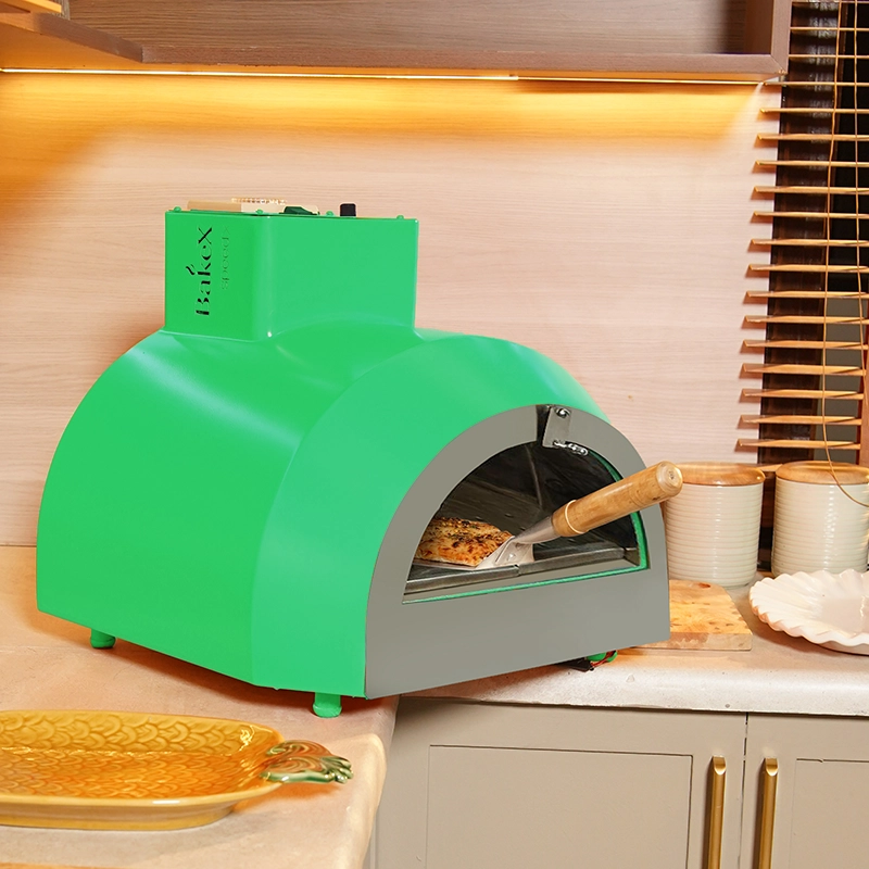 • With its sleek, circular design, the pizza oven fits effortlessly both indoors & outdoors: gardens, balconies, patios, or terraces.